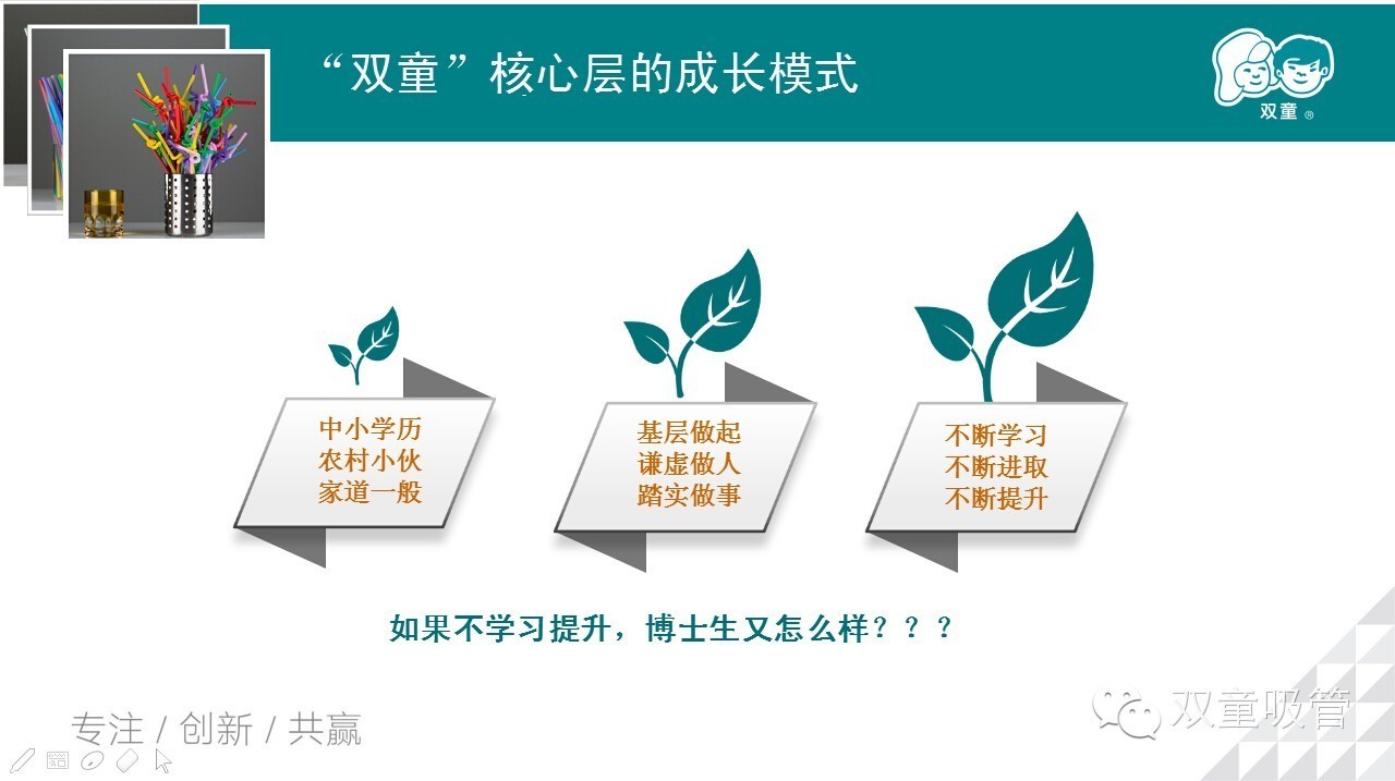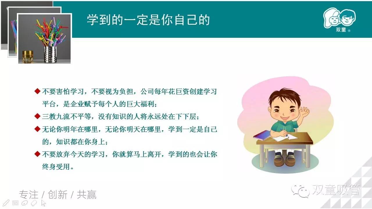 當家人樓總勉勵大家,一定要堅持學習(xí),學習並不(bú)是學校裏才(cái)需要做的事!如果工作(zuò)以(yǐ)後就不思進取,不學習提(tí)升,就算是(shì)博士生,.17c嫩嫩草色视频也不(bú)會對你敞開大門!而對於那(nà)些肯(kěn)學習、肯鑽研的員工,雙(shuāng)童會提供非常多的學習機會和提升空間,讓你在.17c嫩嫩草色视频有一個更好的發展!就算有一天你離開了.17c嫩嫩草色视频,你學到的始終(zhōng)是(shì)你自己的!真摯的話語深深地感染了在座的員工們,相信以後.17c嫩嫩草色视频的學習氛圍會更(gèng)好!