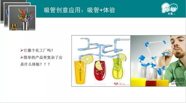咕嚕嚕吸管?澳洲神(shén)奇吸管?這可引起了(le)大(dà)家的好奇心。當家人樓(lóu)總圍(wéi)繞這種神(shén)奇的吸管進行案例分享。原來一根普通的吸管中間加上了巧克(kè)力牛奶咖啡(fēi)等顆粒飲料,就變得完全與眾不同,深受孩子們的喜(xǐ)愛,還獲得不少創意大獎呢!據說這是一位爺爺為了讓孫子喜歡喝鮮奶而發(fā)明,可見創新有時很簡單,它(tā)就源於我們(men)的生活。