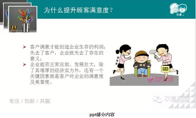 要(yào)得到顧客的滿意(yì),我們更要在(zài)產品的質量提升下功夫,除(chú)此之外,優(yōu)質的服務也是必不可少呢!通過這樣一節課(kè),讓大(dà)家更加深刻地意識到(dào),對於顧客來講,真正需要的一定是她的需求和使用感受,如(rú)果你的(de)產品體驗和服務不好,再大的品(pǐn)牌也不會得(dé)到顧客的認(rèn)可!