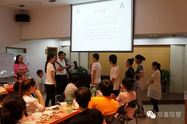 當然了,這麽精彩的(de)歌唱(chàng)比賽,遊戲環(huán)節也是必不可少的(de)。左左右右?這又是什麽(me)遊戲(xì)呢!原來是守擂遊(yóu)戲呀!守擂者手拿充氣錘子,喊1、2、3,喊完就把錘子指向左邊或右邊,攻擂者要把頭轉向與守擂者指的方向的相反方向。幾輪遊戲下來,咱們的廠長還是穩居守擂位置。可愛(ài)的小新當然到手啦!