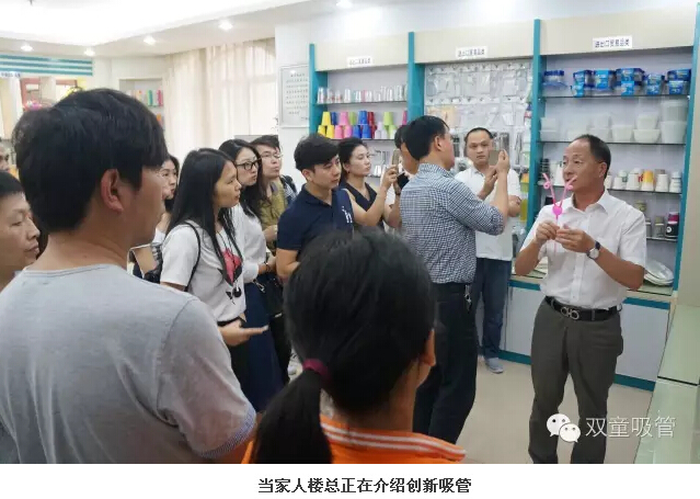 一到“雙(shuāng)童”,大家就參觀起了行政辦公室和吸管樣品房(fáng),當家人樓總介紹了一係列他們從(cóng)沒見過的創新吸管,讓他們驚訝的是,原來(lái)一根小小的吸管也可以有(yǒu)這麽多的功(gōng)能可以開發。