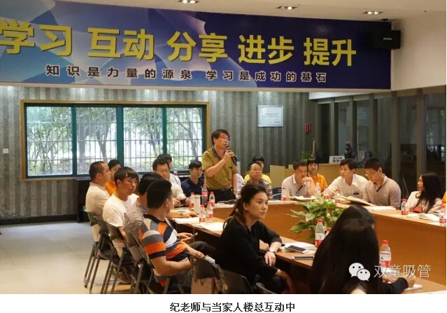 參觀完畢後,大家在九樓閣開(kāi)了一(yī)個小型的“學習會”。這不,一開場,管理精(jīng)英(yīng)們和樓總就進行了(le)積極的(de)互動(dòng),從企業精細化管理的各個方麵向樓總發問,當家人樓總也是拿出各(gè)類(lèi)資料為大家進行了詳細的解答。