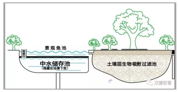 中水儲(chǔ)存池就隱藏在池塘(táng)下麵