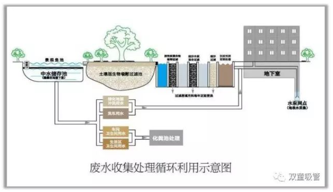 中水景觀池是廢水收集處理係統的一環