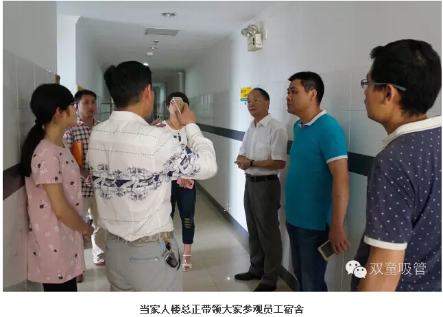 參觀員工寢(qǐn)室時,當家人樓總(zǒng)向(xiàng)大家介紹我們的寢室。每個房間都配有幹淨整潔的洗手間、寬敞明亮的洗衣陽台,並配有(yǒu)各種家具,每個房間安裝有空調,24小時供應熱水洗澡和純淨飲用係(xì)統。同時,每層樓配備有清潔工專門負責衛生(shēng)清潔服(fú)務。