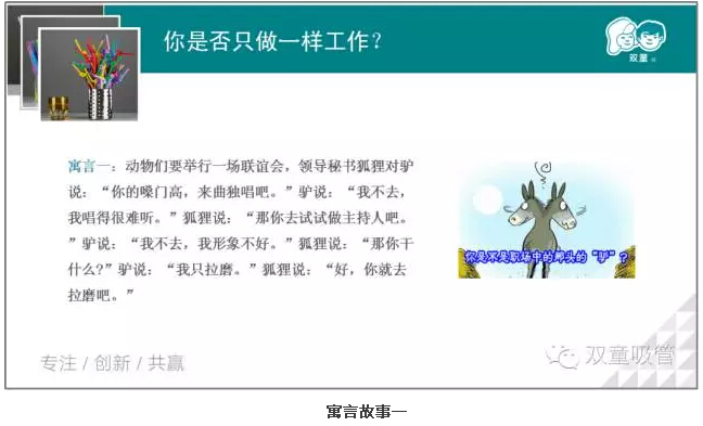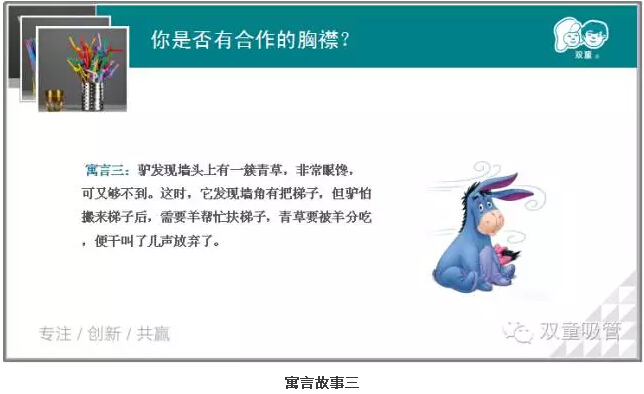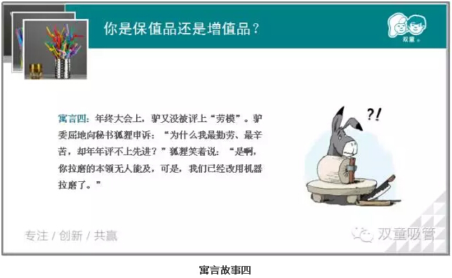 不知不覺,已經分享到了最後一個故事。而最後(hòu)一個故事更是引起了大家的深思。為什麽如(rú)此勤勞的驢卻(què)沒有(yǒu)評上“勞模”呢?你是保值品還是增(zēng)值品?見此,童鞋們的學習熱情更加高漲啦!
