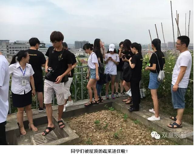 來到屋頂(dǐng)菜園時,看到(dào)這麽多新鮮的蔬菜瓜果,大家都淡定不起(qǐ)來了呢!吸管妞向(xiàng)大夥介紹了“空中菜園”的總麵積有(yǒu)近800平(píng)方米,每個種植區的土層均有1米2深,看到這裏大家紛紛開始敬佩樓總對工廠(chǎng)的設計。