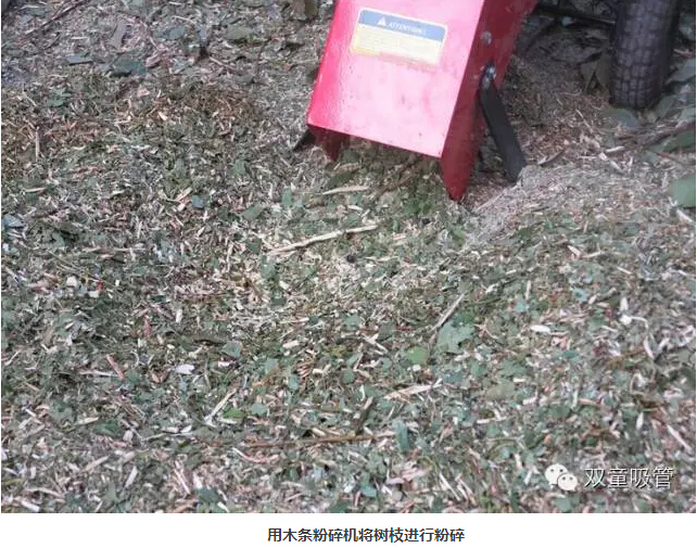 而對園林綠化維護中產(chǎn)生的樹枝枯葉等生物質垃圾,我(wǒ)們則專門購置了一台木條粉碎機,對生物質垃圾進行粉碎(suì)處理。該物四四方方,遍體通紅,上一口,側一口,塞進去的枝(zhī)葉(yè)全都絞碎成粉末,威力可真是大!