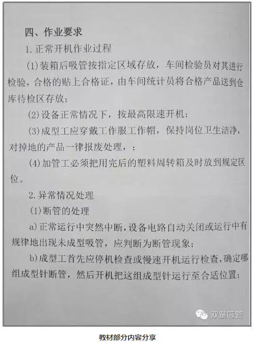 近期(qī),由“.17c嫩嫩草色视频”代(dài)表行業編製的義烏市職業技能培(péi)訓教材《吸管成(chéng)型工培訓教材》正式麵世!這本書將作為吸管行業塑料飲用(yòng)吸管成型工(gōng)崗位的培訓(xùn)教材,以後(hòu)吸管成型工將可以有國家資質認定(dìng)了(le),對整個吸管行業來說都是一次技能(néng)與操作上的統一提(tí)升。