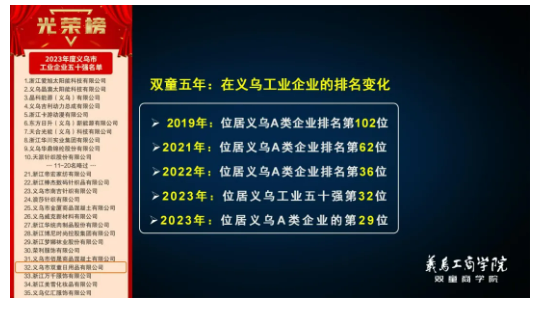 2023年,平台整體增長35.24%;平台稅收增長(zhǎng)23.30%,成功登(dēng)榜“義烏工業企業五十(shí)強第29名”