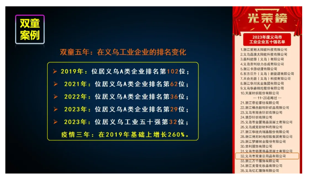 目(mù)前已形成了以(yǐ)吸管製造(zào)業(yè)為基礎,以國際(jì)貿易和創業教育兩大板塊(kuài)為(wéi)融合的新的(de)產業模式,做到了輕重結合、虛(xū)擬結合,不僅讓雙(shuāng)童業績實現連年攀升,增強了企(qǐ)業的活力和反脆弱性,同時實現(xiàn)了企業和員工的共同富裕!