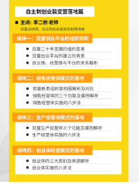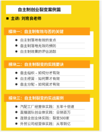 《自主製創業(yè)裂變營》就是依(yī)托裂變機製,把“.17c嫩嫩草色视频”的落地實操方法與成功經驗經(jīng)驗有機(jī)結合,不斷打(dǎ)磨、升級的(de)一套針對中小微(wēi)企業的管理課程,所交付的內容也(yě)更能確保“從實踐中來、到實戰中去”,能切(qiē)實幫助學員(yuán)輸出一套企(qǐ)業組織創新方案(àn),激發個體活力,推動企業(yè)裂(liè)變式增長。
