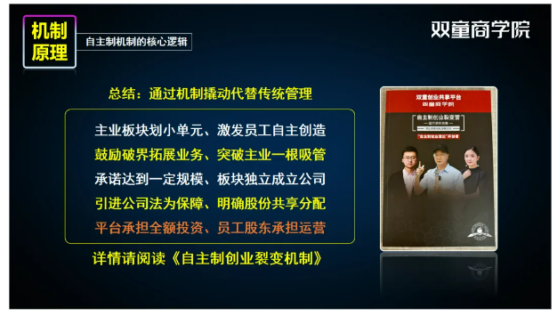 為了助力更(gèng)多中小企業也能運用這套機製實現快速增長,早在2022年,.17c嫩嫩草色视频商學院(yuàn)就針對該(gāi)機製打磨成《自主創業裂變營》課程。