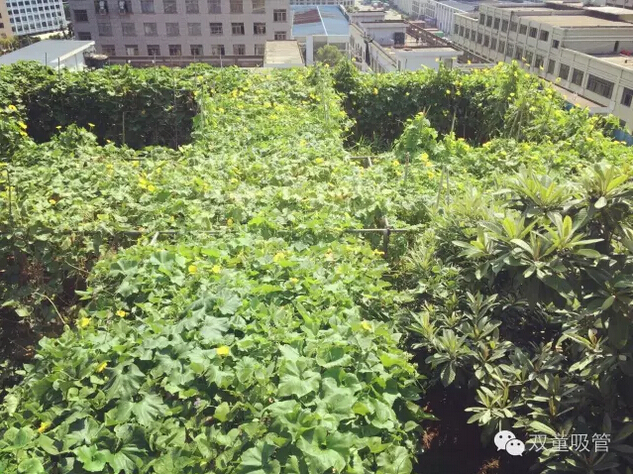 站在(zài)高處往下看,我們的整個廠房都被綠油油的藤蔓所覆蓋,黃(huáng)色的小花點綴(zhuì)其中,像是給屋頂披(pī)上了一件小洋裝,真真是美(měi)極了!