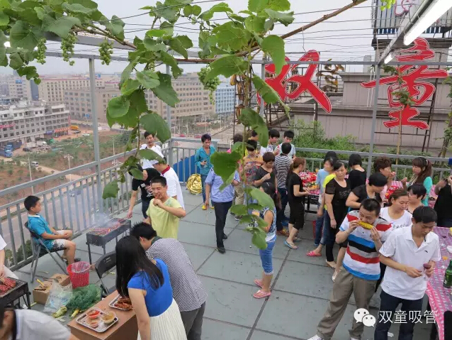 6、大夏天的晚上,九樓樓頂涼風習習,辦一個屋頂燒烤(kǎo)生日會,讓大家自己動手,體驗一下燒烤(kǎo)的樂趣!當夜晚降臨,音樂響起,我們隨著音樂(lè)邊燒烤邊聊(liáo)天,吃點水果唱著歌。當家人樓總親自為我們切蛋糕唱生(shēng)日歌,壽星們本著“生(shēng)日我最大(dà)”的(de)原則,硬是把當家人扮成了(le)一隻大花貓……
