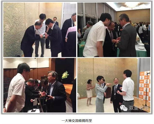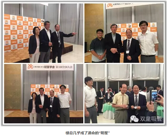 在會議主辦方安排的酒(jiǔ)會交流活動中,樓總與會代表繼續就人本經營開展深入的交流,雖然主辦方(fāng)安排(pái)了簡單的餐飲(yǐn),但樓(lóu)總幾乎沒有任何停頓的時間空隙停下來吃飯,期間共接待了70多位日(rì)本企業經營(yíng)者(zhě)和學者教授的頻繁交流和提問,幾乎是一分(fèn)鍾也沒有停頓:交換名片(piàn)、相互介紹、提問解答、拍照留言......