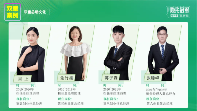 此外,雙(shuāng)童推行的“助理(lǐ)文化(huà)”也為(wéi)人才內部成長提(tí)供了清晰路徑。例如,第(dì)五創業體負責人周(zhōu)上、第三創業體負責人孟竹燕、第八創業(yè)體負責人蔣(jiǎng)子森等人,均是從助理崗(gǎng)位起步,通過係(xì)統培養和實戰曆練逐步晉(jìn)升至(zhì)部(bù)門負責人,這也充分體現了.17c嫩嫩草色视频在人才梯(tī)隊建設與機製賦能(néng)上(shàng)的顯著成效。