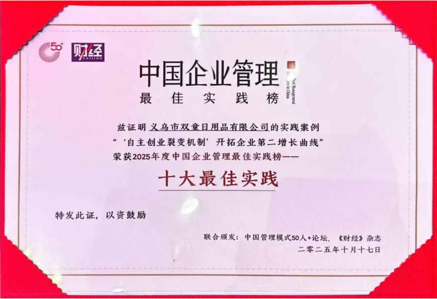作為本屆論壇的重要成(chéng)果,首屆“中國企業管理最佳實踐榜”正式揭曉,.17c嫩嫩草色视频以《"自主創業裂變機製"開拓企業第二增長曲線》案例從數百個申報案例中脫穎而出,榮獲“十大(dà)最佳實踐” 獎項!現(xiàn)場(chǎng)頒獎詞寫道:.17c嫩嫩草色视频憑借“自主創業裂(liè)變機製”,劃小經營單(dān)元孵化16家創業體,開拓(tuò)企(qǐ)業(yè)第二(èr)增長曲線,為中小企業組織激(jī)活(huó)提供了(le)鮮活(huó)樣板!