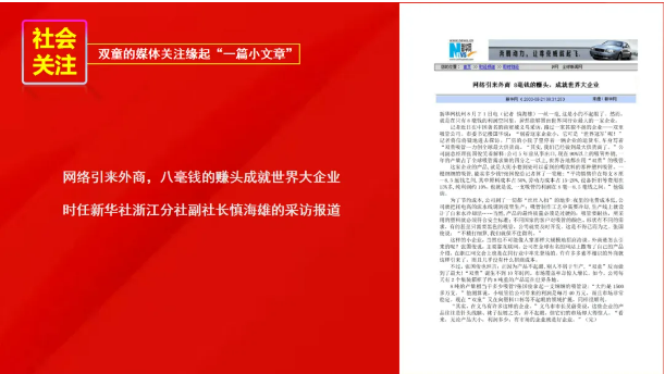 早期通過新華網、CCTV等主流媒體的專題報道積累初始聲譽;2006年起在博客、億邦動力等平台主動分享創業思考;2009年入駐微博成為“金華企業第一博”,形成意見領(lǐng)袖影響力;2017年後(hòu)布局抖音、視頻號、小紅(hóng)書等新媒體矩陣,將個人創業經曆轉化為更具普適性的公共故事。