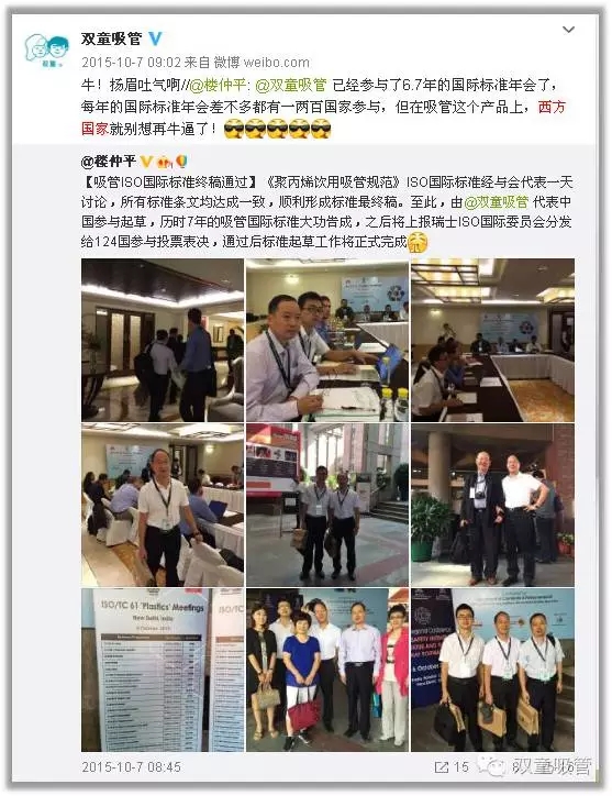 五、2013年(nián)9月8日,趁蘇州召開ISO TC61國際標準化組(zǔ)織年會的屬地優勢(shì),敲(qiāo)定了(le)“吸管”國際標準的最終文本