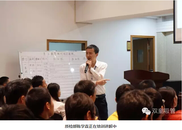 這本培訓教(jiāo)材(cái)出爐後,我們的各級領導們也專門對員工(gōng)進行(háng)了培訓和講解!比如(rú),生產廠長李秀前(qián)為大家講解成型工崗位上衛生管理、操作規範和安全管理等(děng)知識;設備科科長姚長東為大家講解設備的維護和保養規範;質檢部經理陳學森為大家講解了吸管基礎知識、吸管技術(shù)指標、外觀質量要求等知識。