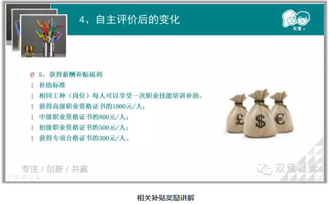 這可是國家的(de)職業資格評定考試,我們的政(zhèng)府部門也十分(fèn)重(chóng)視!我們的員工(gōng)們在考取專業證書(shū)後,還會有一份豐厚的薪酬補貼(tiē)哦!不僅(jǐn)如此(cǐ),我們的企業也會每月對取得專業證書的員工額外發放(fàng)補貼獎勵,鼓勵員工們把自己(jǐ)的工作做精做細!