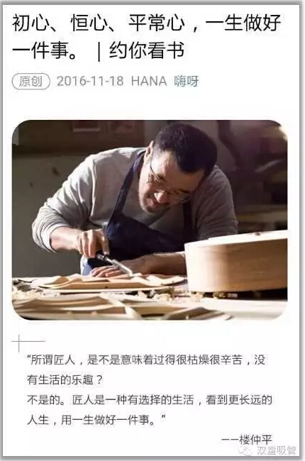 不(bú)是的。匠人是一(yī)種有選擇的生活,看到更長遠的人生(shēng),用一生做好一件事。