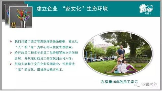 第二章,當家人樓總(zǒng)從自身擴大到“.17c嫩嫩草色视频”團隊,談到“雙(shuāng)童”不斷地進行硬件改革,給(gěi)員工提(tí)供最好的工作和生活環境,致力於建立“家文化”,鼓勵夫妻和子女在企業就業,解決(jué)核心員工家庭生活(huó)問題,長期營造“家”的文化,用誠意去穩定員工!