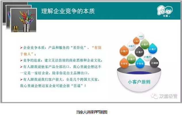 其次就是“創新”、“競爭”和“規模”的本質,創新就是一點點改變,創(chuàng)新需要極(jí)大的信仰追求和耐心,需要以五年、十年作為一個(gè)單位堅持推進!而企業競爭的本質就是產品和服務差異化,“有別(bié)於他(tā)人(rén)”,盡量建立無人能夠仿效的(de)商業思維和企業文化!