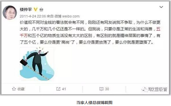 沒錢談不上自由,但有錢也(yě)未必自由。原始積累很重(chóng)要(yào)!當家人樓總幾(jǐ)年前發的一條(tiáo)微(wēi)博道出了(le)他的看法:價值觀不同對金錢的看法就會有不(bú)同,其實隻要你是正常的生活和消費(fèi),五千萬和五個億的物質生活(huó)每月不會(huì)有太大的區別,有區別就是精神層麵的事情了,有(yǒu)了五個億,要(yào)麽你就更(gèng)“高尚”了,要麽你是(shì)更放蕩了,要麽你就是更墮(duò)落了。