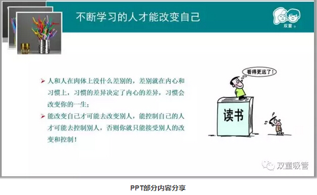 原本此次課程是由當家人樓總和大家分享(xiǎng)《為什麽我們要持續學習》課程,但(dàn)講師卻換成了吸管妞!其實是因為我們在不斷(duàn)探索學習會的(de)開展方式,看看老板不在,童(tóng)鞋(xié)們是(shì)不是更(gèng)放鬆呢!