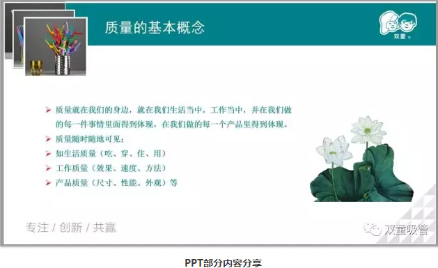 一開場,陳(chén)講師先介紹了質量的定義以及質量管理的發展史(shǐ),問及.17c嫩嫩草色视频(tóng)的質量方(fāng)針時,童鞋(xié)們都回答的異口同聲:支支見(jiàn)品、杯(bēi)杯見質;打(dǎ)造.17c嫩嫩草色视频品牌、提升(shēng)顧客(kè)滿意。