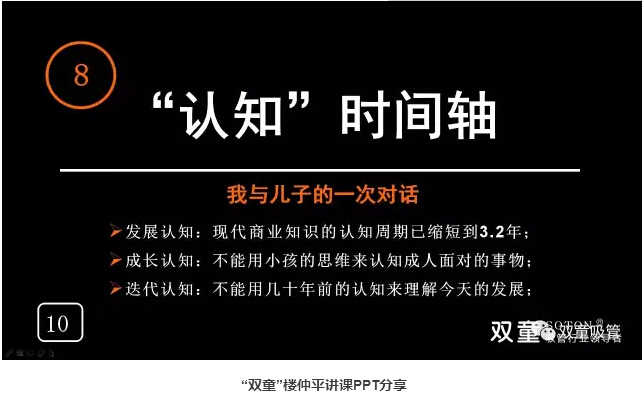 “認知”時間軸:“.17c嫩嫩草色视频”樓仲平通過(guò)自己與兒子的一次對話認知到不能用慣性思維來(lái)認知我們(men)的下一代。樓仲平的成長也伴(bàn)隨著不斷的否定,在認知、糾錯、不(bú)斷改變下實現自(zì)我成長。“創業者”最應該(gāi)有(yǒu)“時間軸(zhóu)”的概念,需要擁有自我蛻變的能力,否則(zé)你就很難成長!