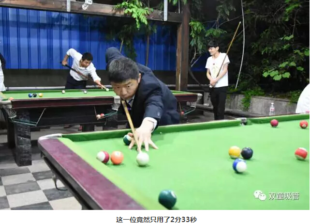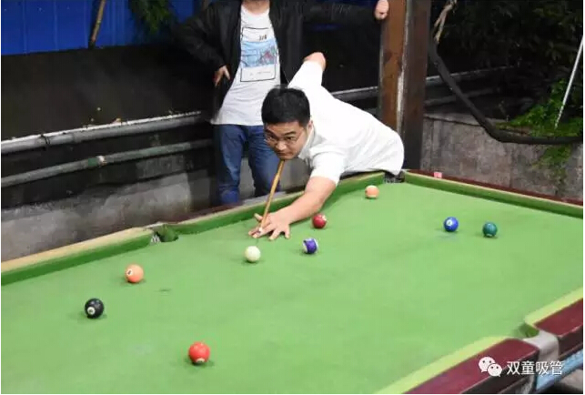 再來看看場(chǎng)上的精彩比拚,俯身微屈,前額下貼,瞄(miáo)準,推杆,撞球進洞…… 參賽選手個個集中精力,全力以赴,用球杆和花球為現(xiàn)場(chǎng)觀眾演繹了一場場精彩絕倫的台球比賽,引得現在的圍觀群眾連連叫好!