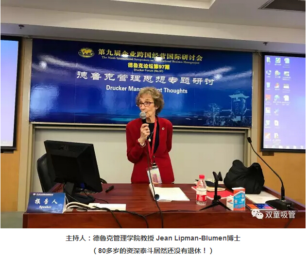 論壇正式開始,現場來(lái)了很多著名的國外學者(zhě),有英文同聲翻譯對分享者的課程進行(háng)翻譯,大家圍繞德魯克管理思想進行專題探(tàn)討!此次論壇的主持人是來自美國彼得•德魯克管理學院教授Jean Lipman-Blumen博士,80高(gāo)齡的她特地從(cóng)美國來到中國參加此次跨國(guó)經營(yíng)國際論壇!