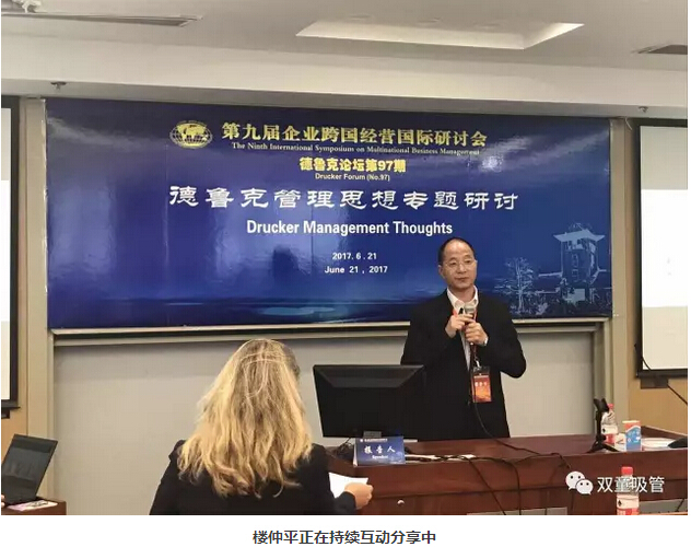 6月21日,樓仲平受邀參加(jiā)由南京大學商學院主辦的跨國經營國際論壇——德魯克管理(lǐ)思想專題研討,和南京大學商學(xué)院名譽院長趙曙明(míng)教授、美國德魯克管理學院校友關係助理主任 Shaheen PLUNIER女士同台做主(zhǔ)題分(fèn)享!