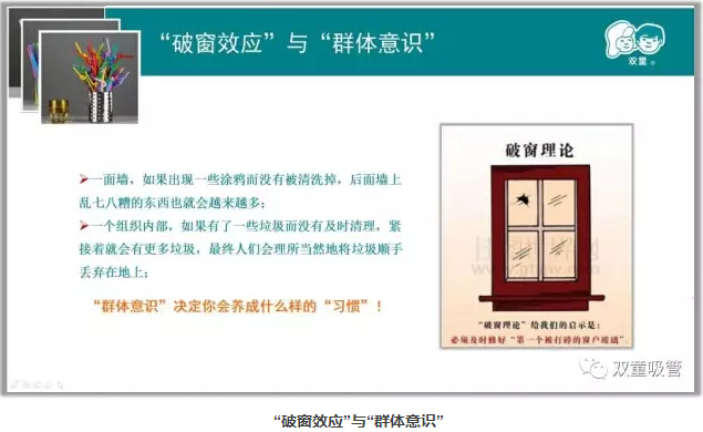 就好比剛來“雙(shuāng)童”的新員(yuán)工,剛(gāng)進廠門的時候(hòu)會隨(suí)地吐痰。可是過(guò)了一(yī)段時間,看到大(dà)家都不會這麽做,再加上在幹淨整潔的(de)環境下也不好意思(sī)再(zài)隨地吐痰。久而久之,自身的壞習慣(guàn)也慢慢地消失,養成了好的行為習慣!
