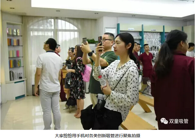 移步樣品房,看到如此新穎(yǐng)的吸管,大(dà)家(jiā)紛紛拿著手(shǒu)機相機對(duì)它們進行聚焦(jiāo)攝影!妞(niū)也向大家介紹了一係列創新吸管,讓他們驚訝的是(shì),原來一根小小的吸管也可以有這麽多(duō)的功能可以開發!