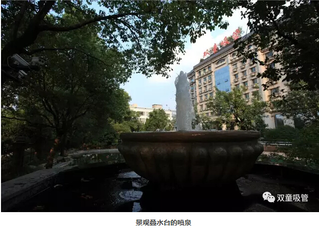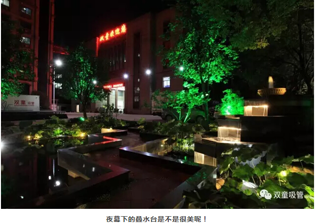 經過九曲橋,來到湖邊的景觀疊水台,一道噴(pēn)泉衝(chōng)天而起,散開漫天花雨,衝(chōng)入水池裏的水不停地翻滾著,倒影迷幻,美麗極(jí)了!