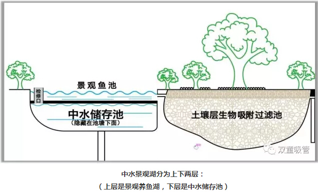 現在,改造後的中水景觀湖(hú)分為(wéi)兩層,上(shàng)層是一米多深的(de)景觀養魚(yú)湖,下層是四米五深的中水儲存池,專門用於(yú)儲存廢水呢!