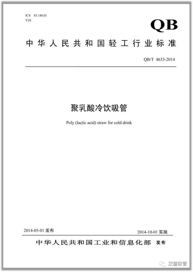 《聚乳酸冷飲吸管》國家行業標準