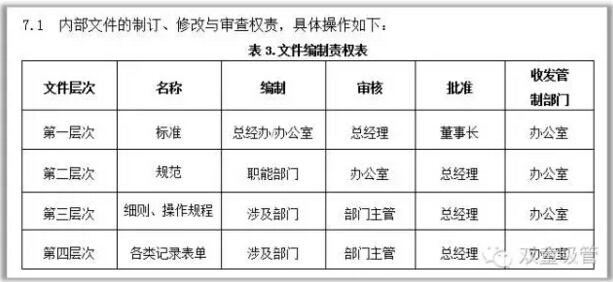第二(èr)層次文(wén)件:本公司內部(bù)的職能部門之間(jiān)對某一活動的聯係方(fāng)式的描述,有關經營管理活動步驟的規範;