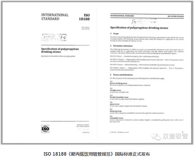 20166月(yuè)27日,瑞士ISO標準化管理組織正式向全球162個成員國下發了(le)《聚丙烯飲用吸管規範》ISO國(guó)際標準文本。這也是金華市首件、浙江省第28ISO國際標準向全(quán)球各成員國正式發布。