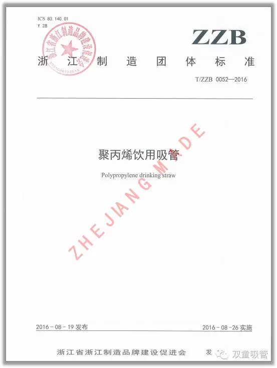 《聚(jù)丙烯飲用(yòng)吸管》浙江(jiāng)製造團(tuán)體標準