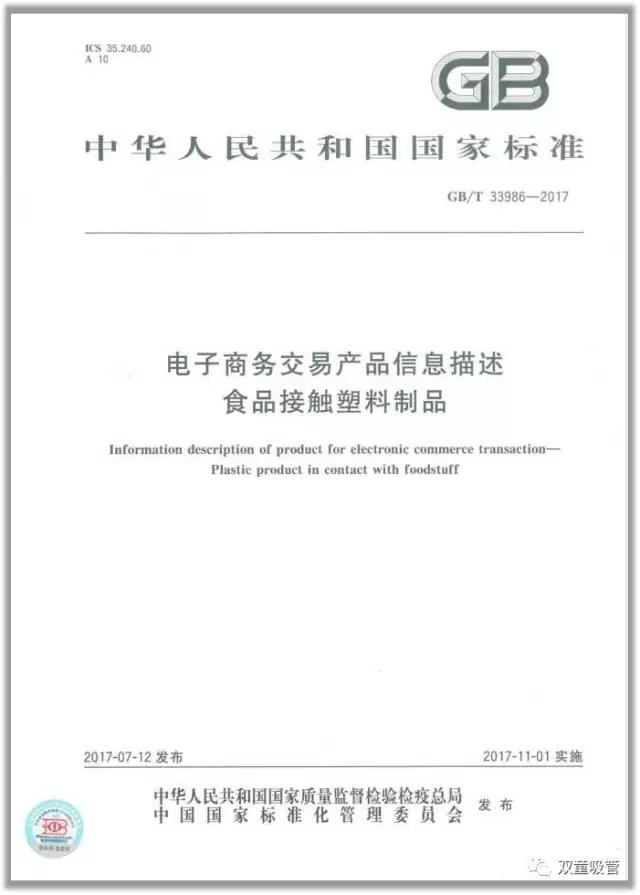 《電子商(shāng)務交(jiāo)易產品(pǐn)信息(xī)規範食品接觸塑料製品》國家標準