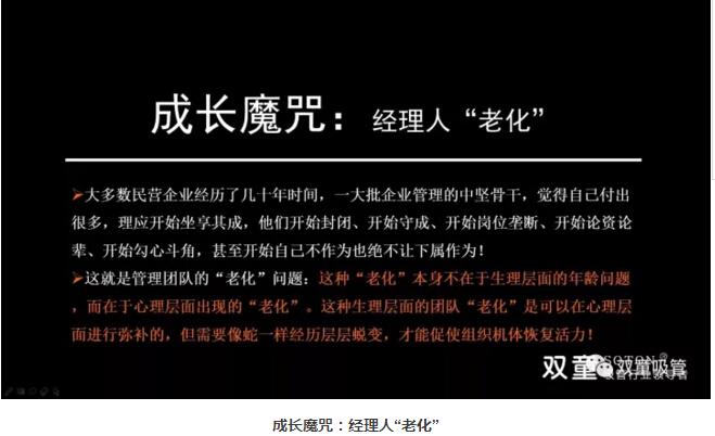 “.17c嫩嫩草色视频”創辦初期聘任部分原國營企業的下崗管理層,這些人客觀上在企業發展中做出了巨大的貢獻。但到了2010年前後,其中的大部分管理層逐漸出現了“認知時間軸瓶頸”:他們依托於習慣思維,完全(quán)憑(píng)經驗用老方法解決新問題,不願意學習,創新意識低下,抵製變革,拒絕接(jiē)受和應(yīng)用新興事物,團隊的成(chéng)長遇到了瓶頸。