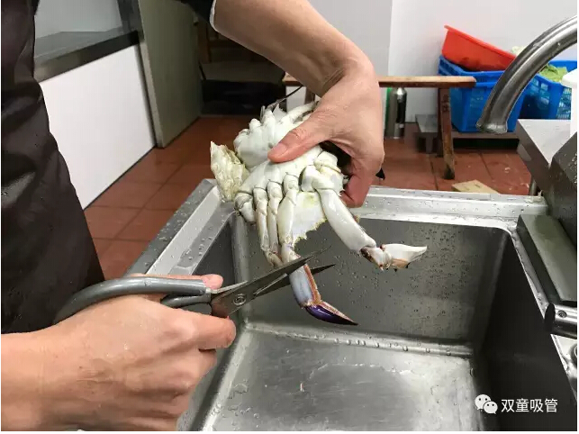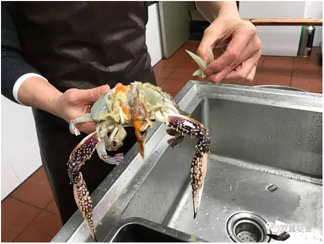 12、取出砂(shā)囊後將蟹身兩側的蟹鰓(看上去像魚鰓)用(yòng)手工拔除幹淨,如果(guǒ)蟹鰓底部有烏黑砂子,千萬不要用清水衝洗,用幹淨(jìng)牙(yá)刷局部清洗一下就可以了。