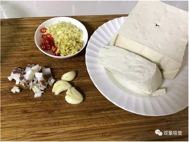 19、準備(bèi)適量火腿,準備新鮮的(de)鹽鹵嫩(nèn)豆腐,一般一斤螃蟹配3斤左右豆腐,豆腐一定要新鮮水嫩(nèn)。