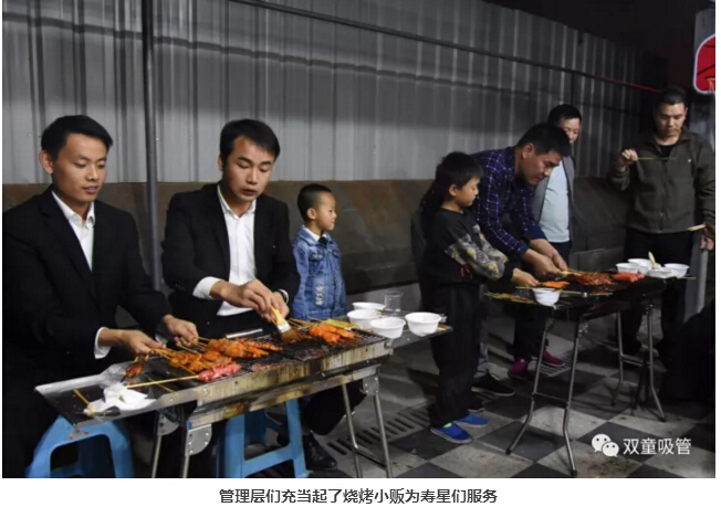 咦?車(chē)間管理們(men)也爭當起了“燒烤小販”,為壽星們進行服務。員工們喝著美酒吃著主管們烤的肉串,別提多開心啦!往往員工手上的還沒吃完,這邊(biān)領導們(men)就已經笑眯眯地把(bǎ)新烤好的肉(ròu)串奉(fèng)上了,吃都(dōu)來不及,這是什麽節奏?