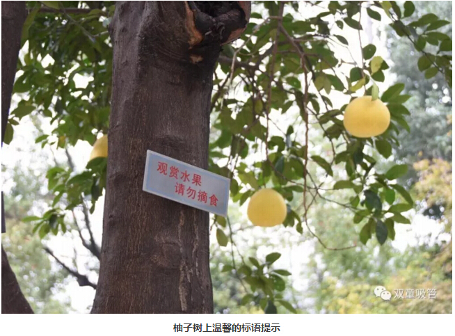 原來,為了“.17c嫩嫩草色视频”的生態和美觀,公司明確柚子是觀賞性水果,每棵(kē)柚子樹上都有“觀賞水果,請勿摘食”的字樣,提醒和引(yǐn)導員工不要摘食觀賞水果。